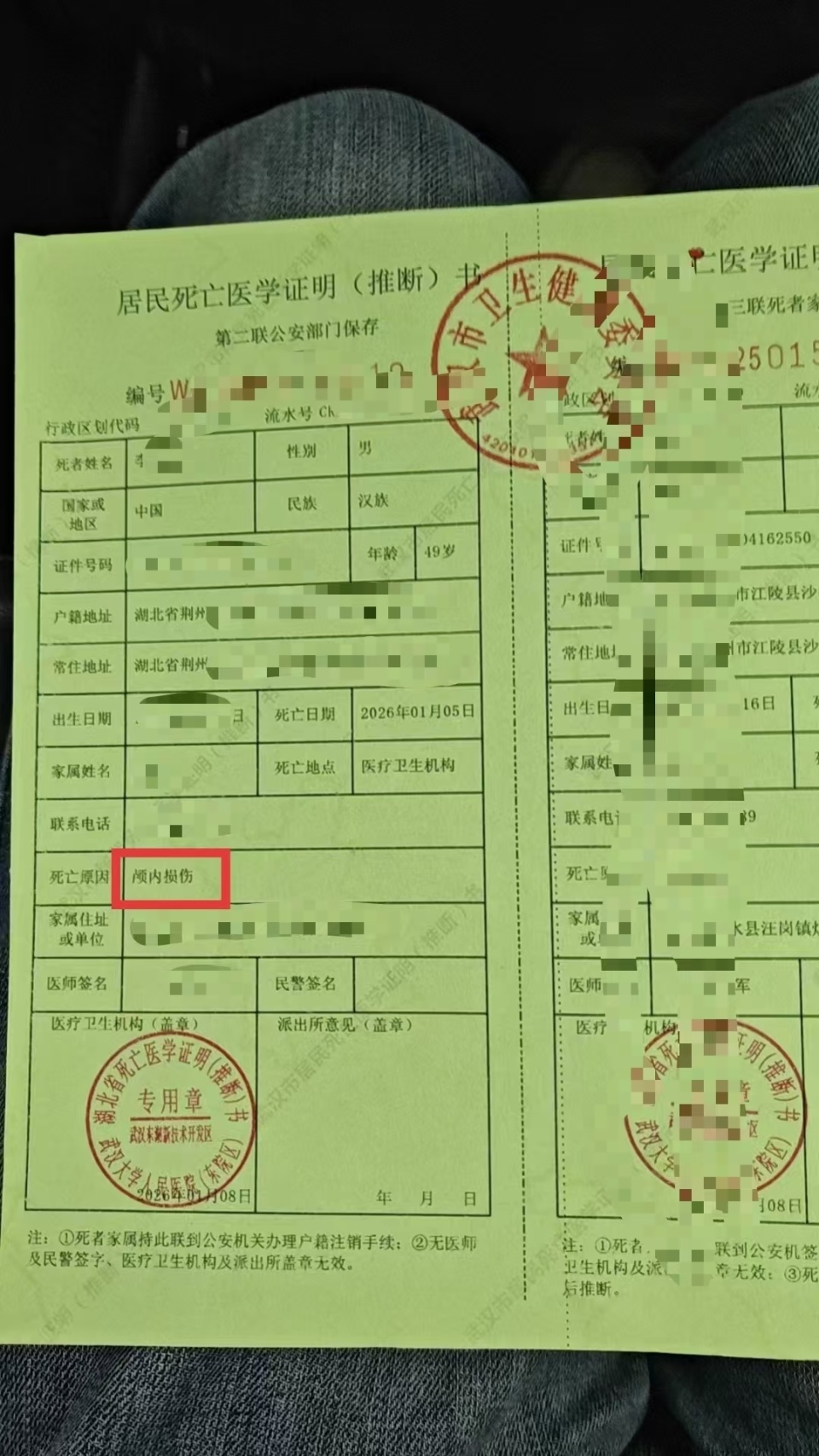 1日上午,华商报大风新闻记者联系到死岁的侄子李先生,他介绍称,涉事视频记录的是第二起事故,岁的小叔正是此次事故的受害者,他们家属正在武汉当地与多方协商身故赔偿。“人送上救护车时就已经没了”,由武汉市卫健委出具的死亡医学证明(推断)书显示,死因系颅内损伤。