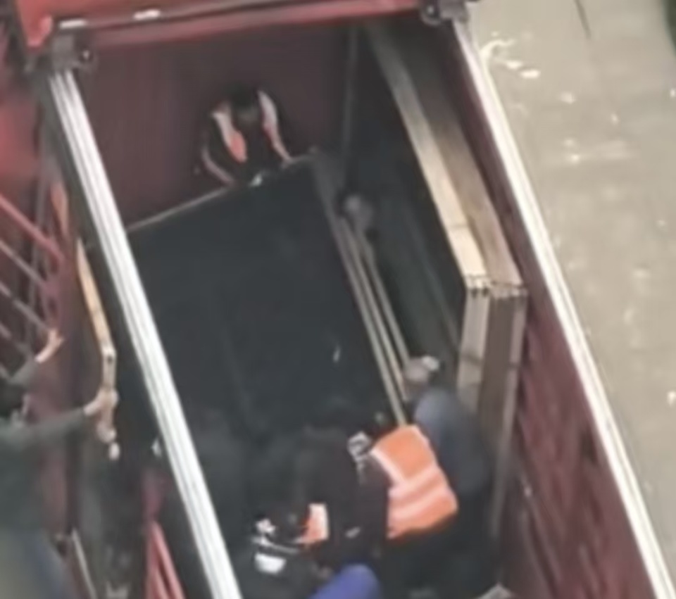 据网友提供的视频显示,事故现场有一辆大型红色货车,露天车厢内装载着多扇“封窗用钢化玻璃”。放置于车厢左侧的钢化玻璃出现倾倒,因高度较长,倒下时便与车厢右侧形成一个夹角,一名男子被卡在玻璃下,五位男性上前尝试救援却未能搬动玻璃。